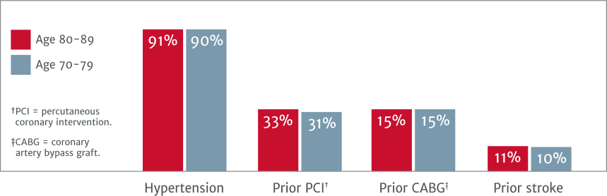 Looking at the baseline characteristics of these two patient groups, severe AS patients in their 70s and 80s present with similar clinical characteristics: